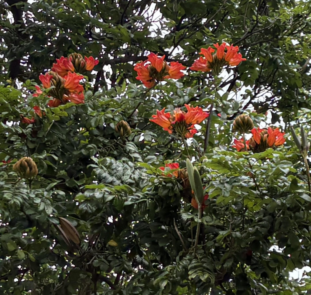 ・赤い花をつけたアフリカンチューリップ